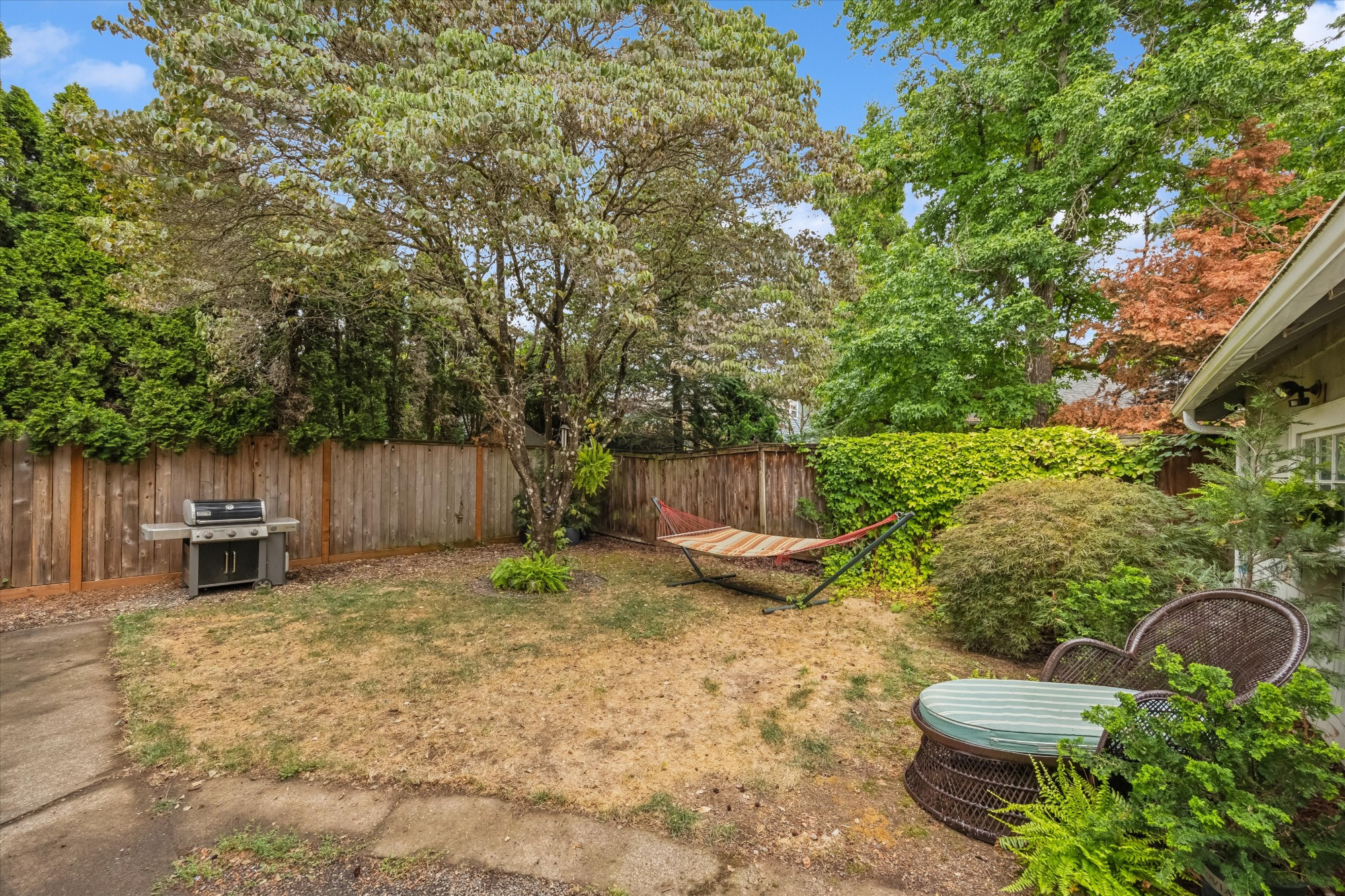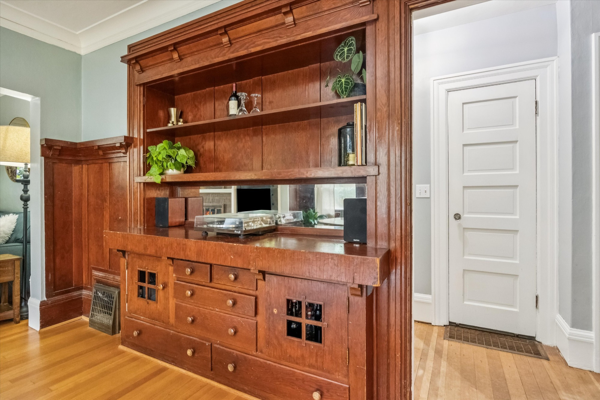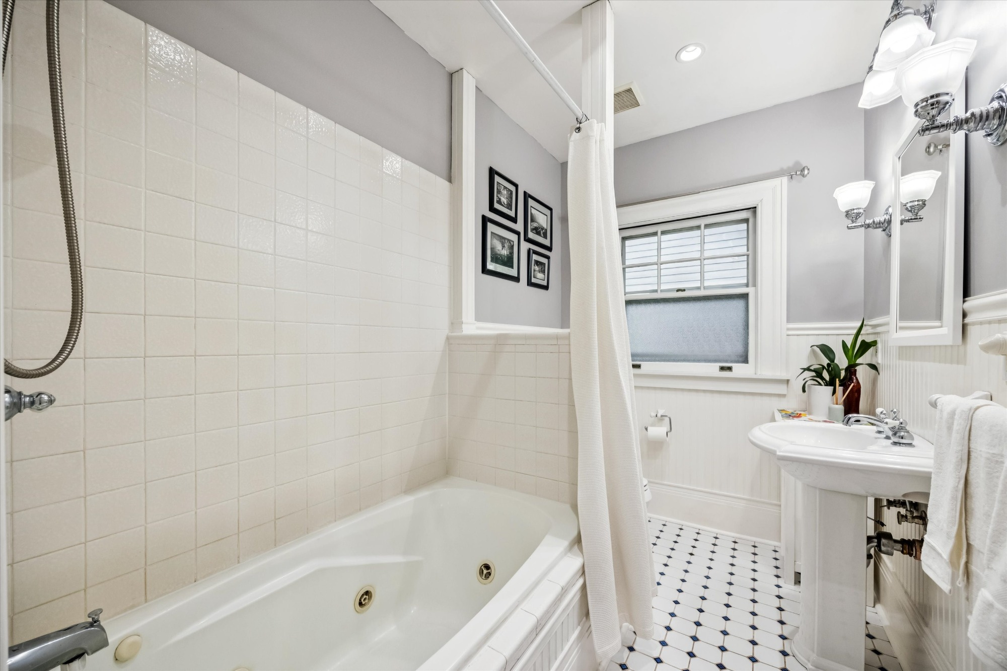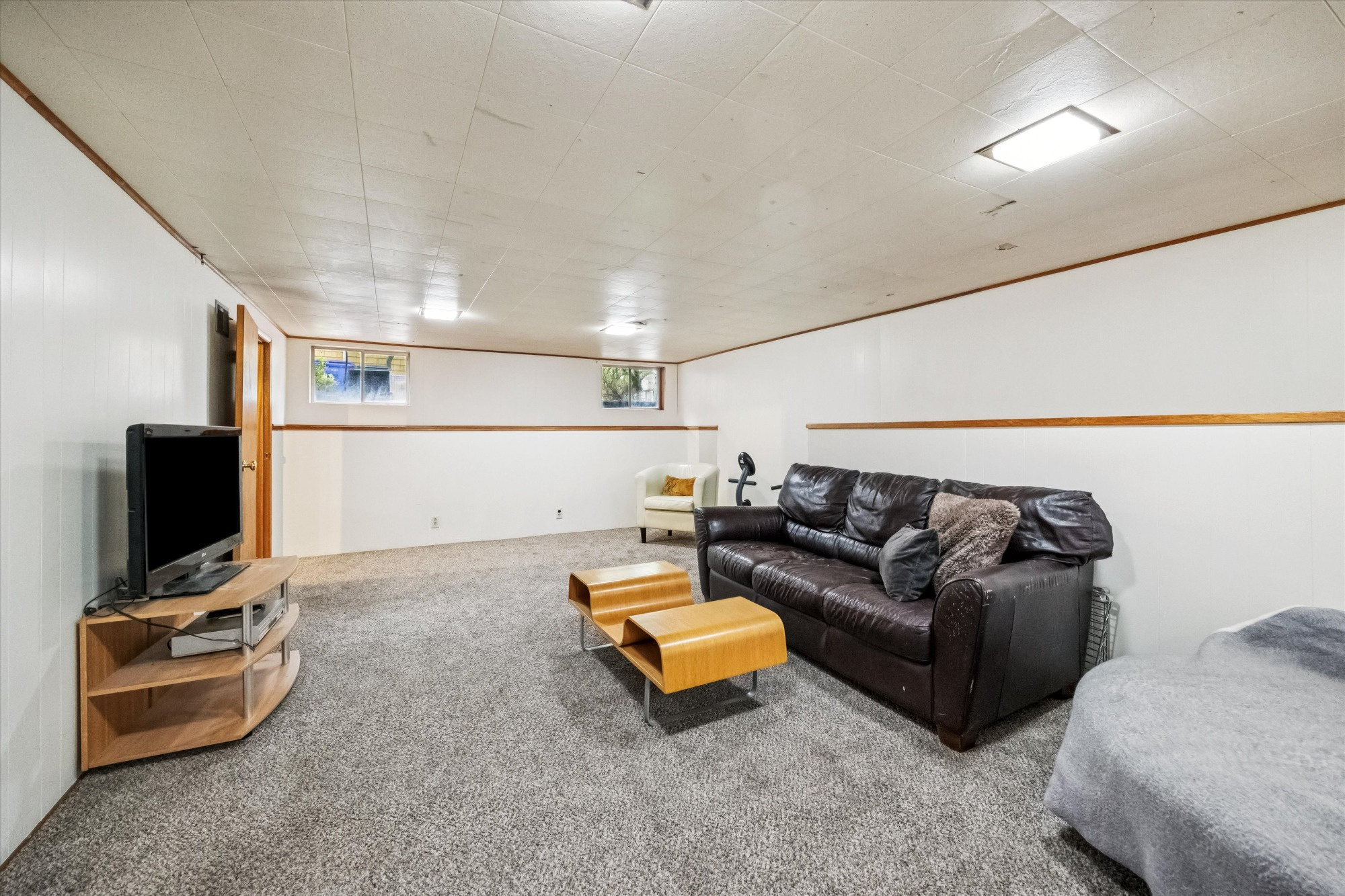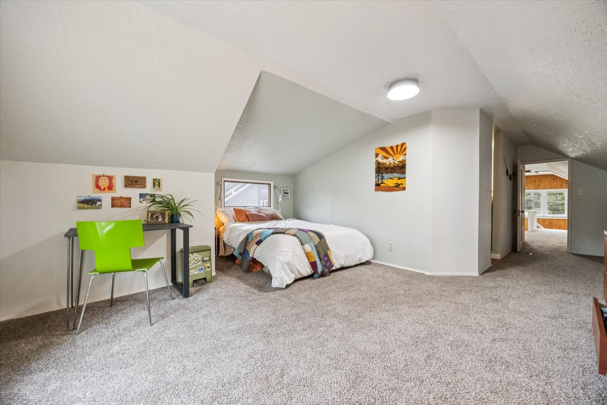 Charming Alameda bungalow with a front porch that dreams are made of and gorgeous stained cedar shake siding. The living room has a wood fireplace and gorgeous wood floors that continue through the rest of the main floor. The dining room features stained wood waincoating and trim. The updated kitchen is a chef's delight with an island, a plethora of storage and high-end Bosch appliances including the gas range. Ann Sacks tile and Schoolhouse Electric lighting in kitchen. Two bedrooms on the main floor with the primary suite upstairs is the perfect layout. The basement features a family room and the fourth (non-conforming) bedroom. Plus lots of storage. The fenced back yard and patio are perfect for summer entertaining. Oversized detached one car garage and private driveway. New roof in 2023. New carpet. Walk Score-84 and Bike Score-88.
