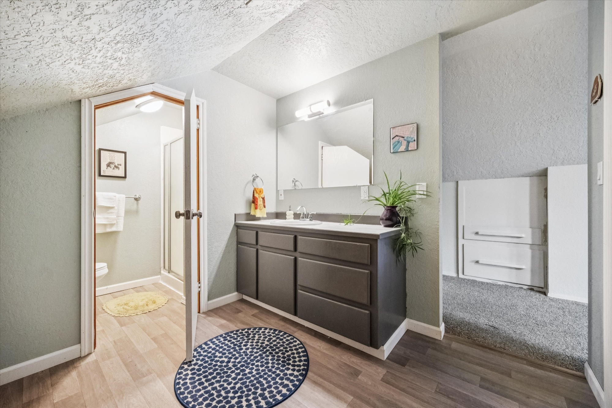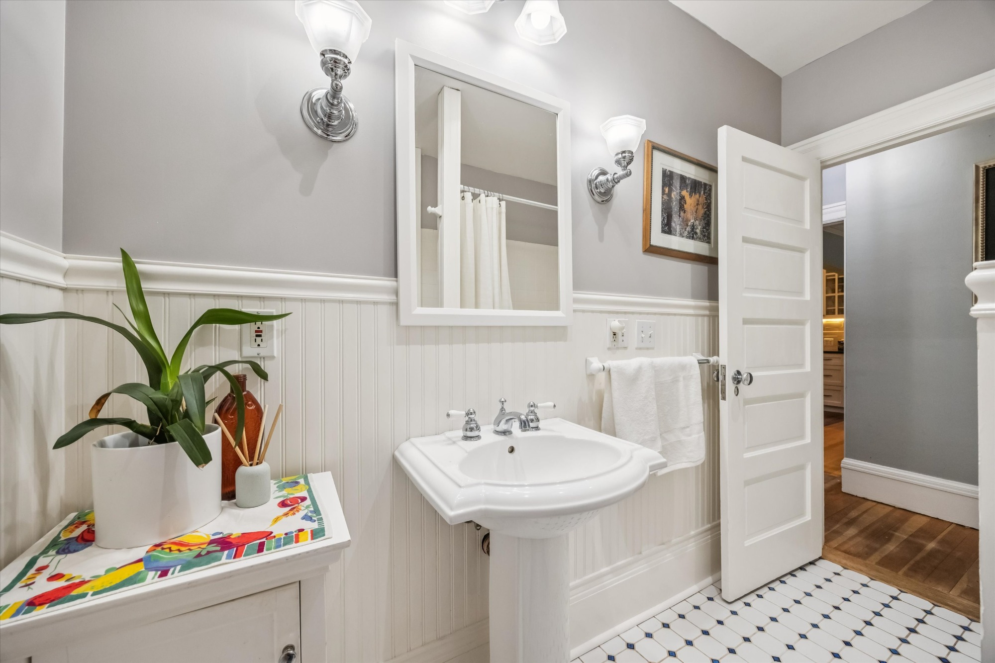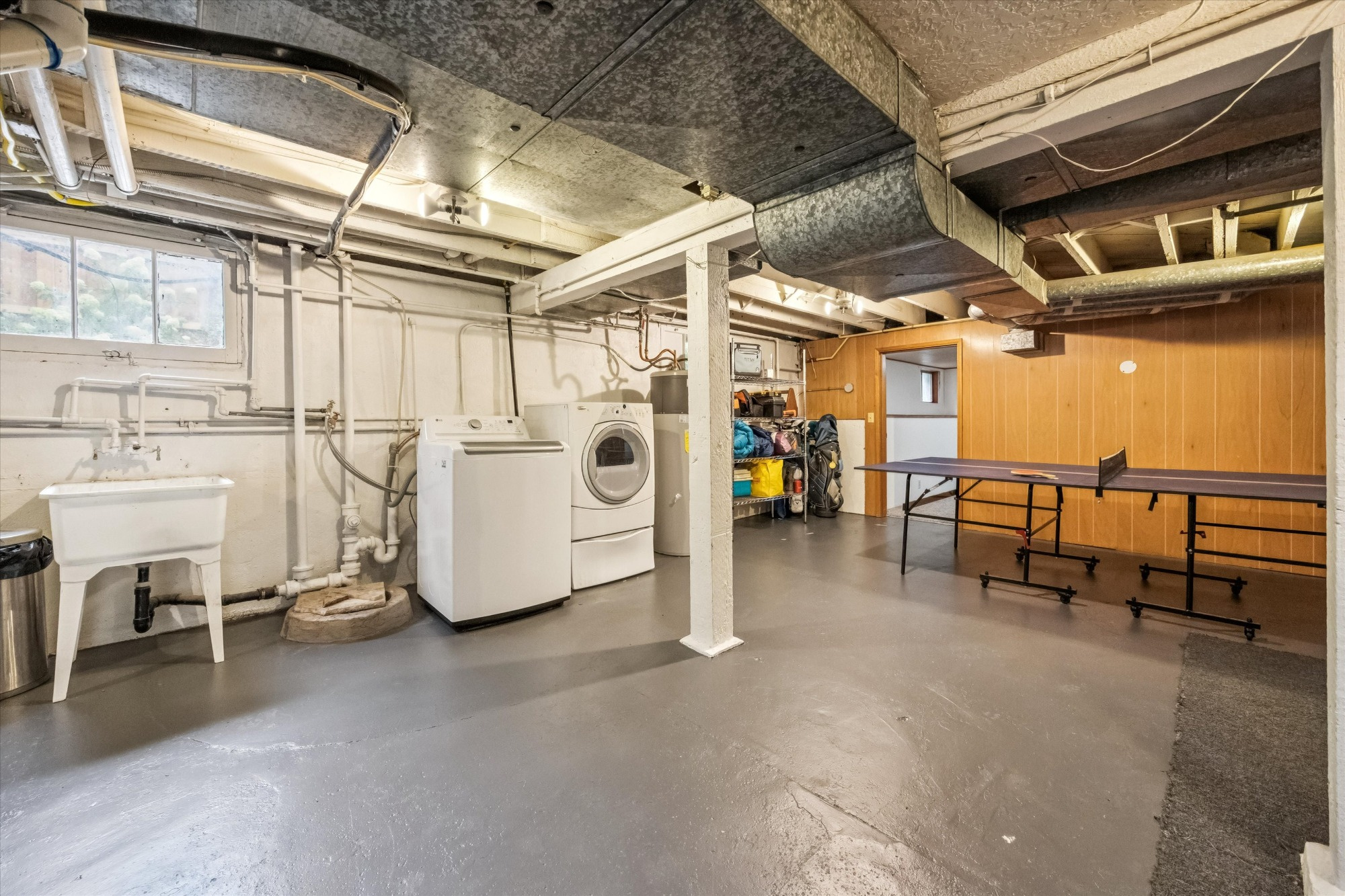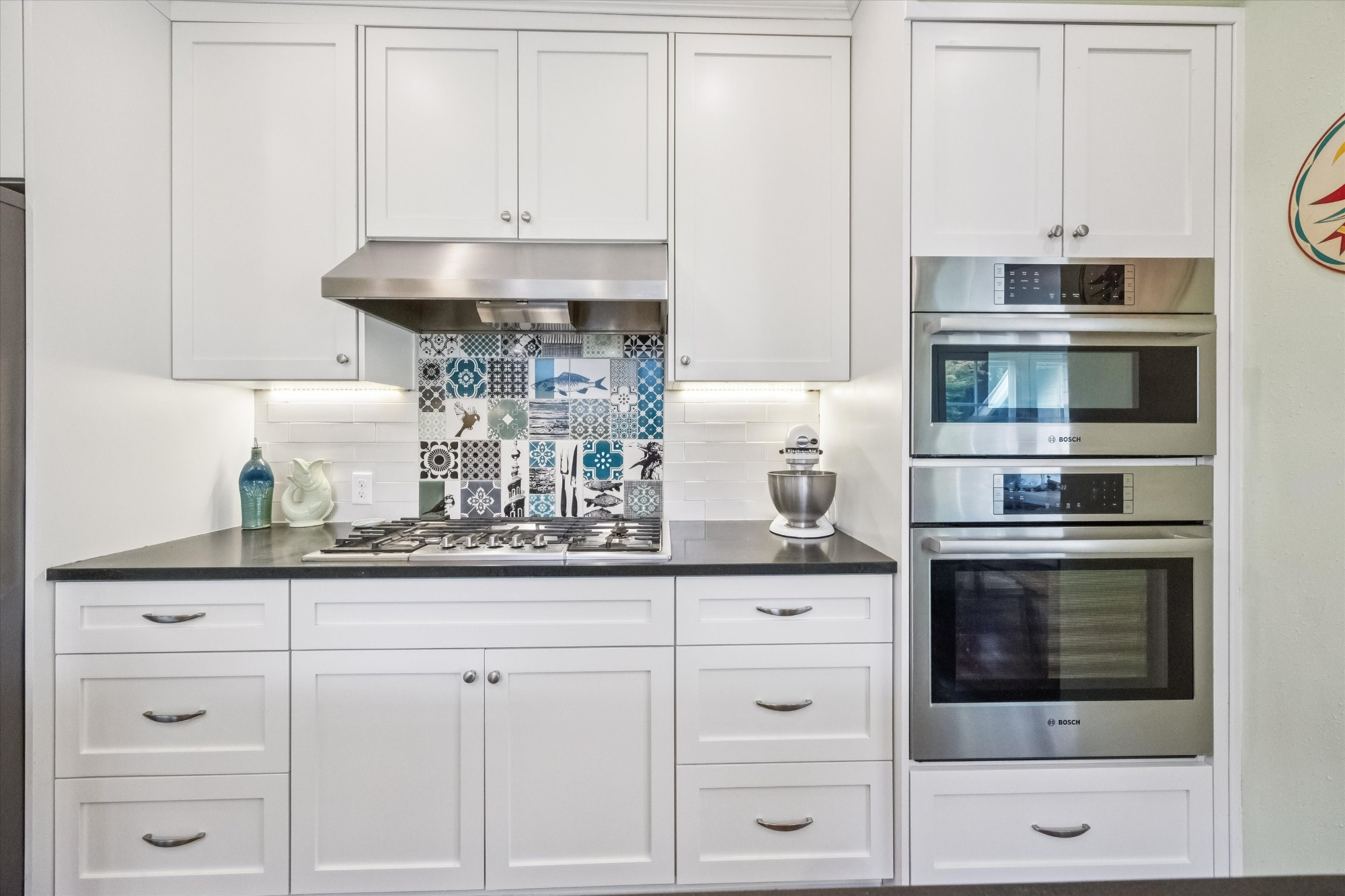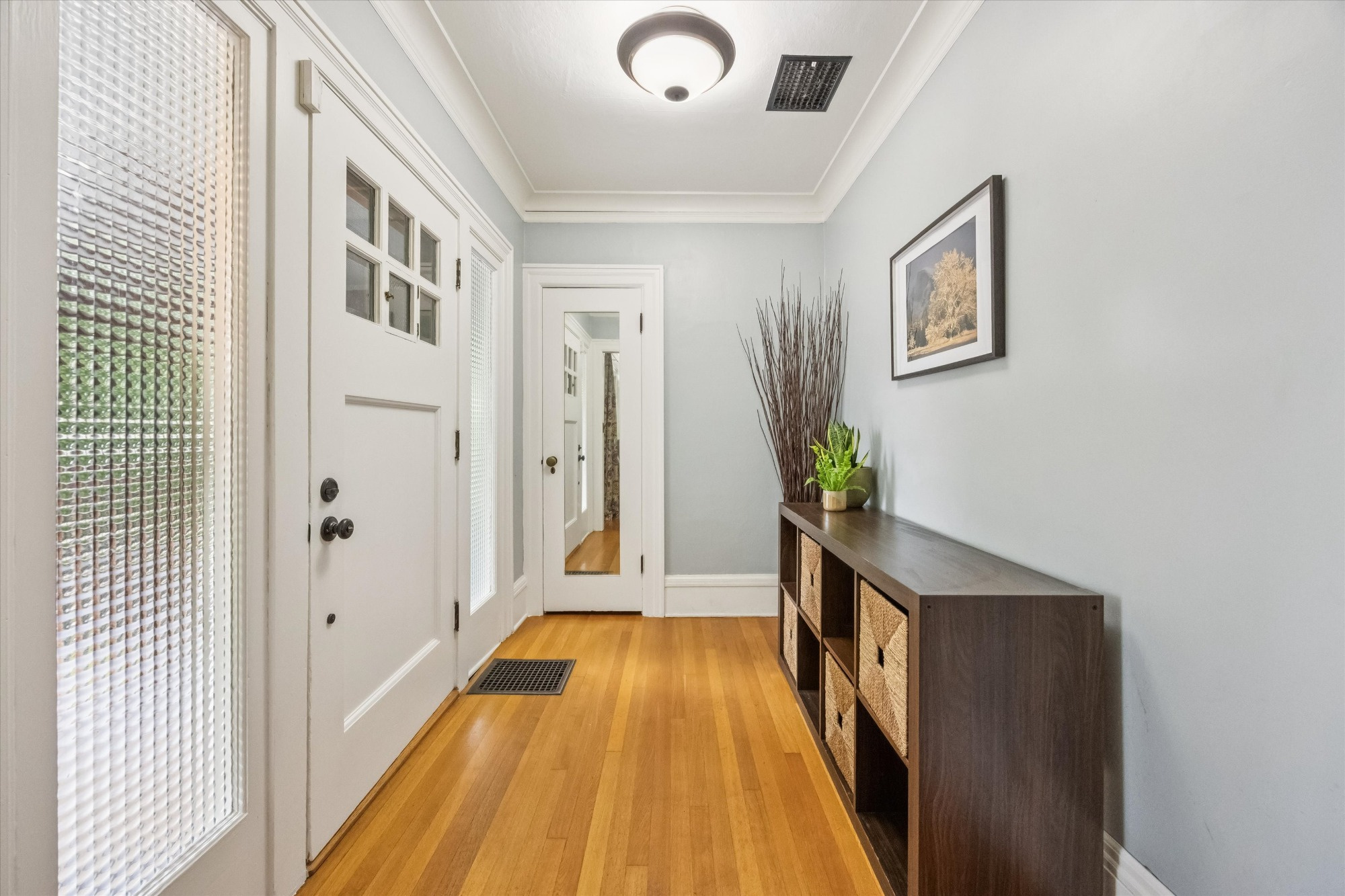 Charming Alameda bungalow with a front porch that dreams are made of and gorgeous stained cedar shake siding. The living room has a wood fireplace and gorgeous wood floors that continue through the rest of the main floor. The dining room features stained wood waincoating and trim. The updated kitchen is a chef's delight with an island, a plethora of storage and high-end Bosch appliances including the gas range. Ann Sacks tile and Schoolhouse Electric lighting in kitchen. Two bedrooms on the main floor with the primary suite upstairs is the perfect layout. The basement features a family room and the fourth (non-conforming) bedroom. Plus lots of storage. The fenced back yard and patio are perfect for summer entertaining. Oversized detached one car garage and private driveway. New roof in 2023. New carpet. Walk Score-84 and Bike Score-88.